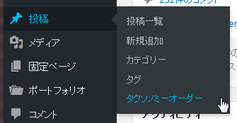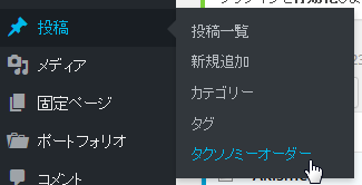 ダッシュボード 投稿>タクソノミーオーダーをクリック