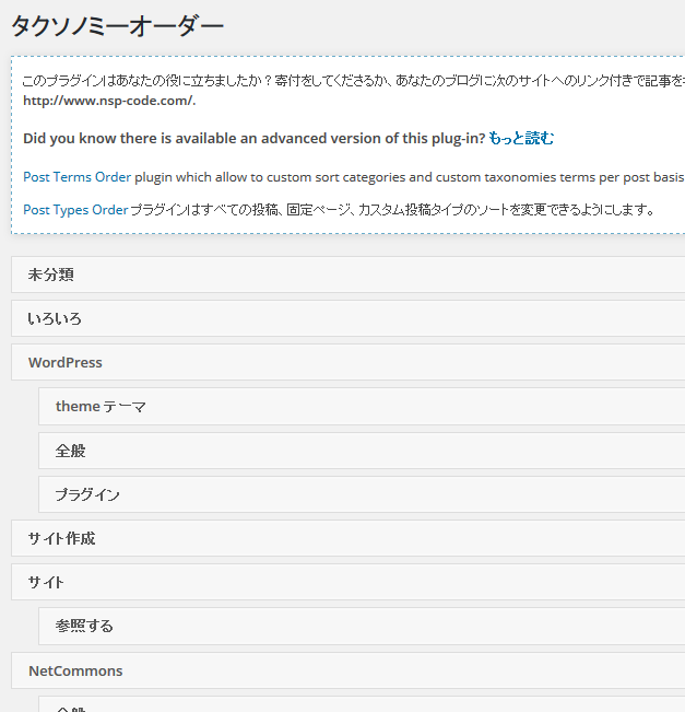 タクソノミーオーダーを使ってカテゴリーの順番を変えたいと思います