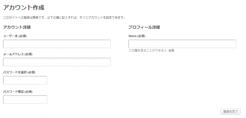 BuddyPressをインストールした時点では既に「管理者」として自分がユーザーに登録されていると思います。SNSの運用方針によると思いますが、SNSでは自由にユーザーを登録する機能が必要になってくる場合があります。