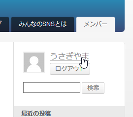 申請をされた方の「うさぎやま」でログイン中に、サイドバーの自分の名前をクリックすると