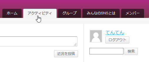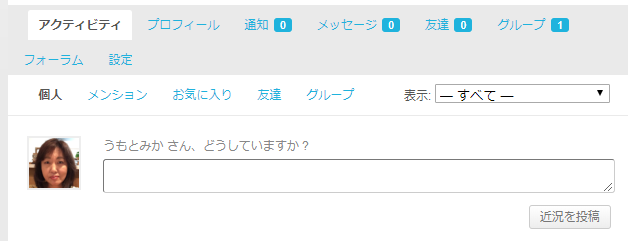 ↑を追加、した状態のBuddyPressがどんな感じになるのか?についてちょっとだけご紹介しておきます。