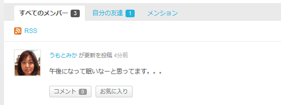 すると、 アクティビティ タブに、「○○さん、どうしていますか?」というところに入力欄が表示されています。ここに、