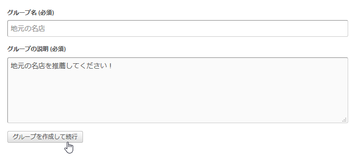 グループ作成をクリックします。