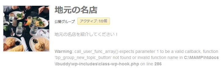 Warning: call_user_func_array() expects parameter 1 to be a valid callback, function ‘bp_group_new_topic_button’ not found or invalid function name in C:\MAMP\htdocs\lbuddy\wp-includes\class-wp-hook.php on line 286