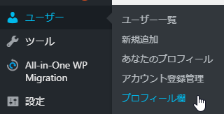ダッシュボード ユーザー>プロフィール欄をクリック