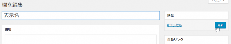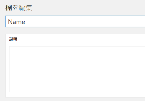 このような表示になります。既に表示されている、Name(メイン)(必須)が表示されています。表示用の名前を Name→表示名 に変更します。
