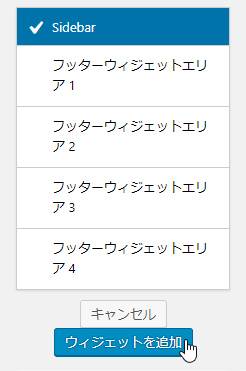 Sidebarが選択されている上遺体でウィジェットを追加をクリック