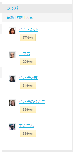 最近活動した、人気が高い、または新規参加したメンバーの動的リスト