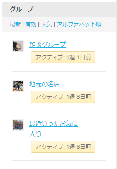 アクティブ度、人気度、最新度、またはアルファベット順による動的なグループのリスト
