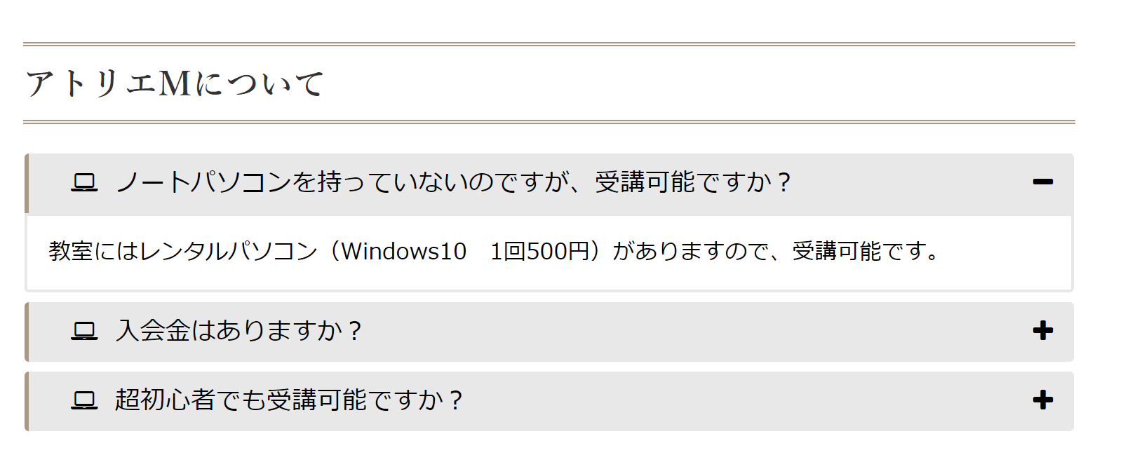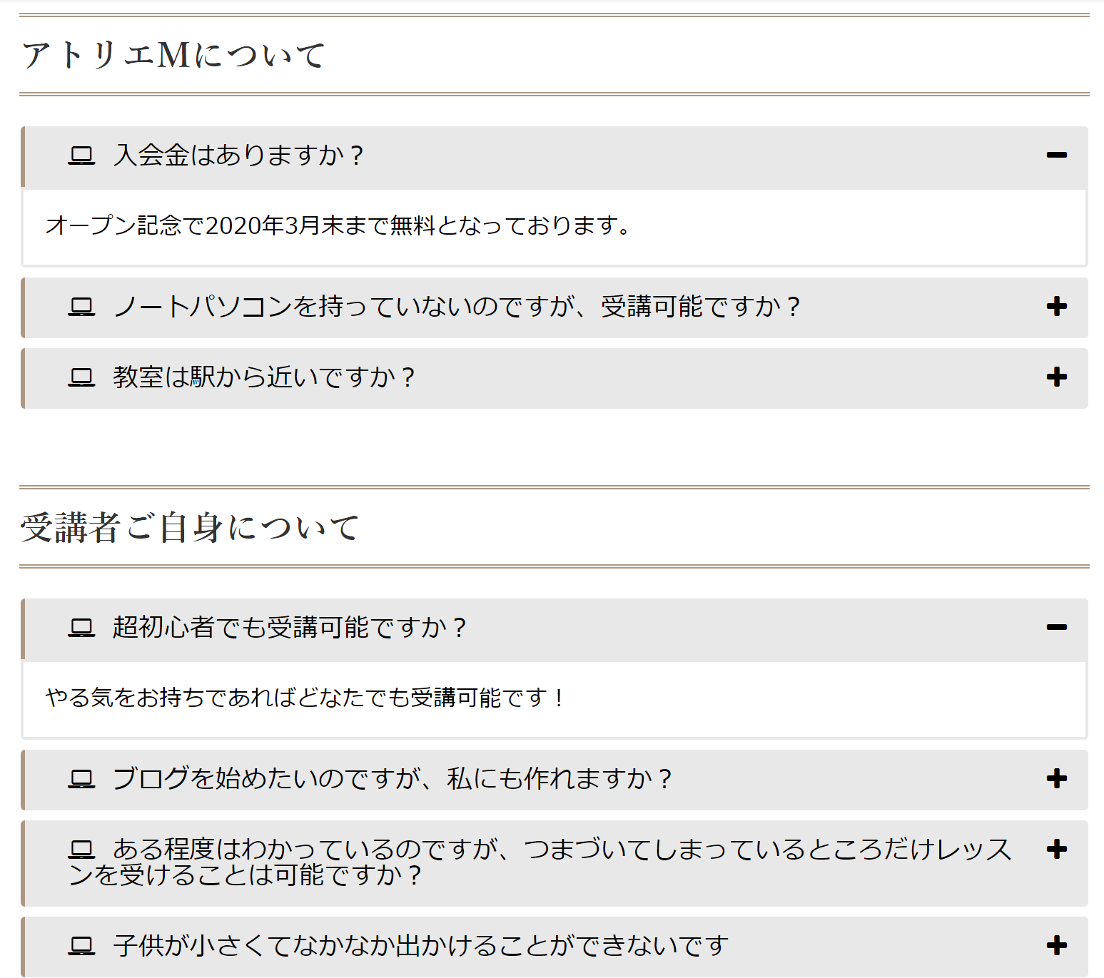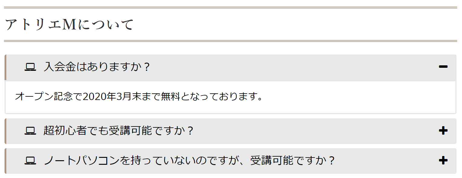 ホームページにあるといいなと思うのが「よくある質問」です。と思いつつも自分のホームページにはなかなか入れることができませんでした。そこで一念発起してデザイン的にいい感じのプラグインを見つけてホームページに「よくある質問」コンテンツを追加してみました。
