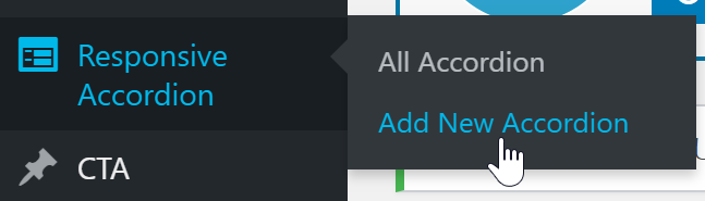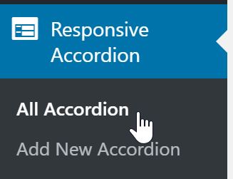 ダッシュボード Responsive Accordion>Add New Accordionをクリック