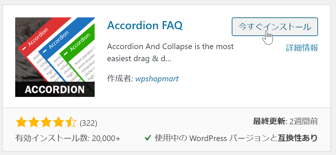 Accordion FAQをインストールします。