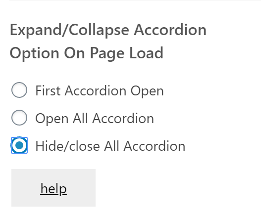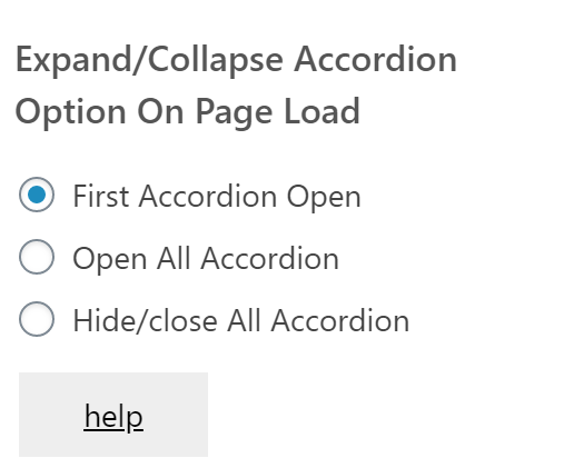 Expand/Collapse Accordion Option On Page Loadというオプションは、デフォルトでFirst Accordion Open にチェックが入っているので最初の回答部分が表示されているようでした。