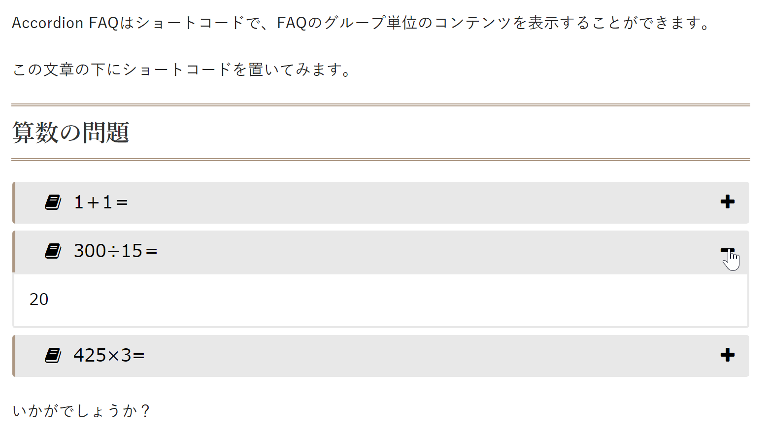 プラグインを使ってよくある質問コンテンツを作ってみる