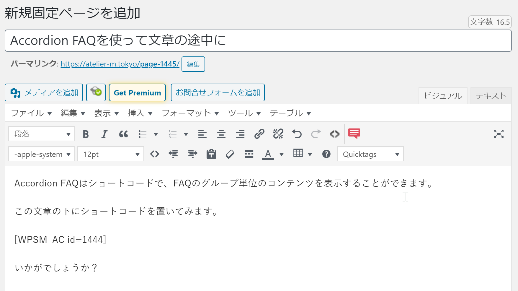 固定ページにFAQを表示させてみる