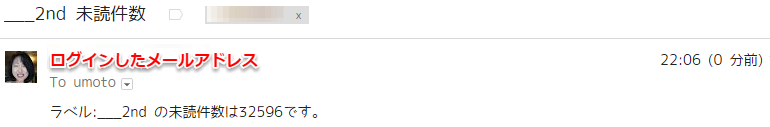 このように指定したラベルの未読件数がメールで届いていました(^^)/