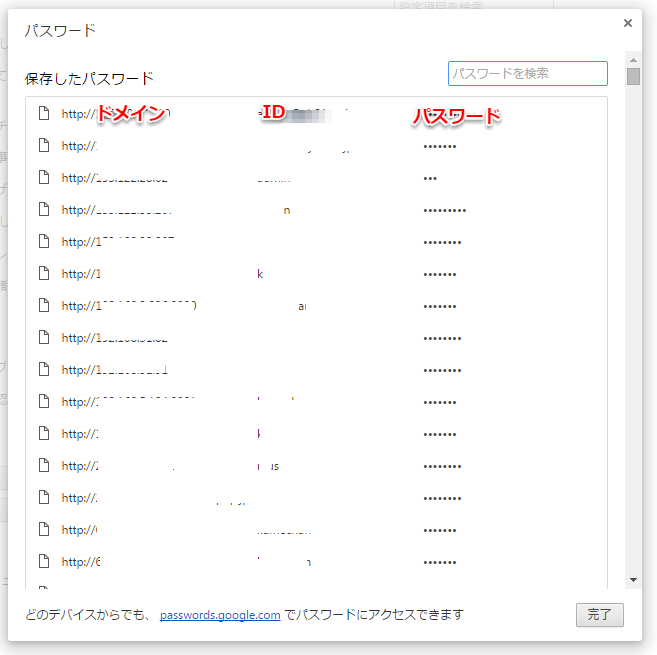 ということでやっとすっきりと、chromeブラウザに保存されているIDとパスワードについて
