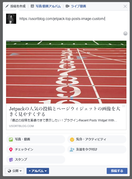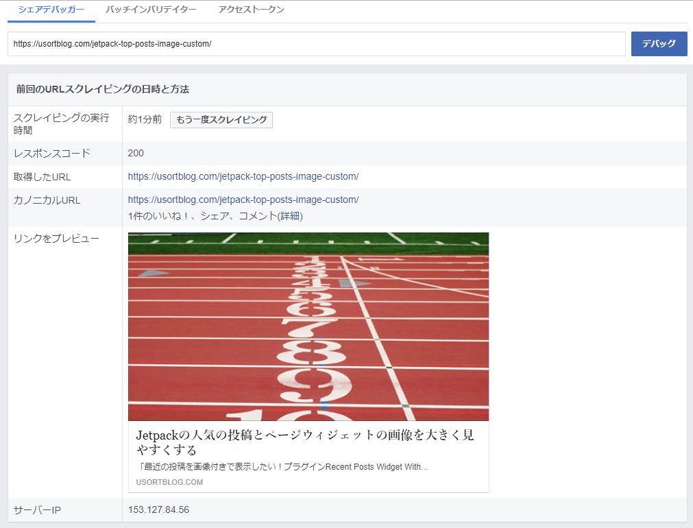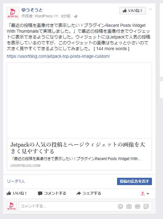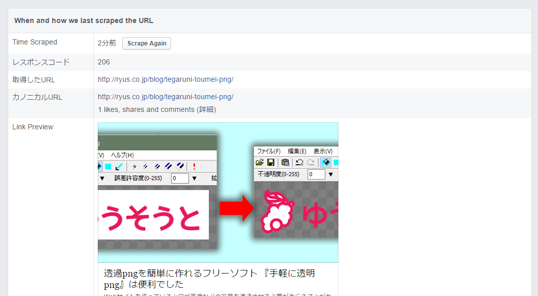 画像が表示されました。この記事で言うと「既にシェアしてあるblogの画像を修正する方法」と同じです。