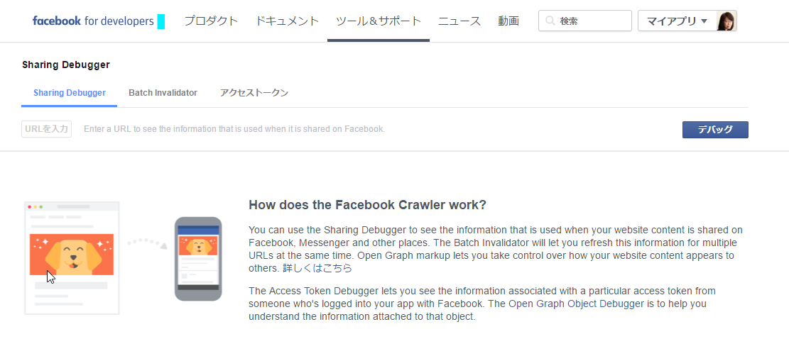 ということでFacebookデバッガーを使って、OGP画像を正しく認識してもらうことにします。Facebookデバッガーも最近新しくなって使いやすくなりました。