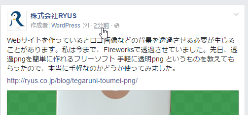 修正したいFacebookのシェア記事の時間(日付)部分、この場合は 2分前 をクリック