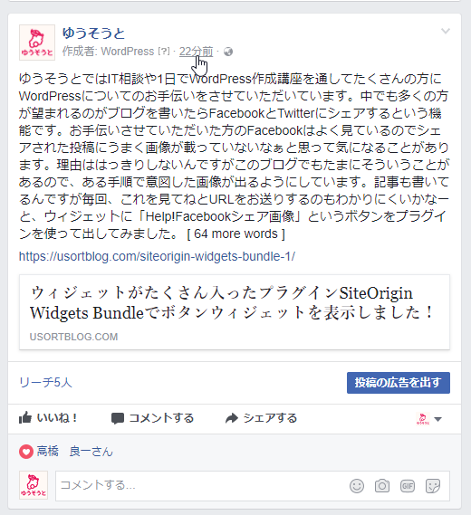 それは、上記画像の 22分前(これはシェアされてからの経過時間なので経過時間によって異なります)というところをクリック