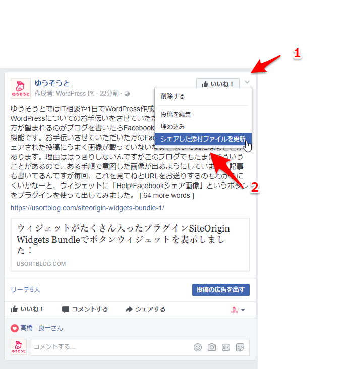 ここまでは今までもやってきたのですが、既に違う画像がついてFacebookにシェアしてしまったblogはどうすればいいでしょう?