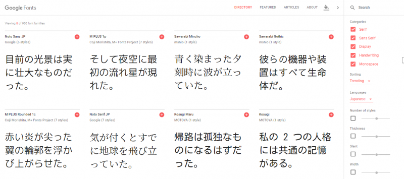 本日(2018/10/31)現在8種類のフォントが利用可能です。