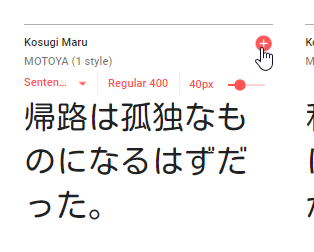 先ほどGoogle Fontsのページから使いたいフォントを選んだときは1つしか選びませんでしたが、使いたいフォントが複数あるときは+を押せば、指定を追加することが出来ます。