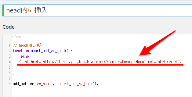 赤線の引いてある箇所は先ほどGoogle Fontsで表示させていた