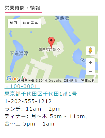 で新しく地図を表示してみます。Jetpackの連絡先情報をサイドバーに入れるとダミーデータを元に地図が表示されるはずです