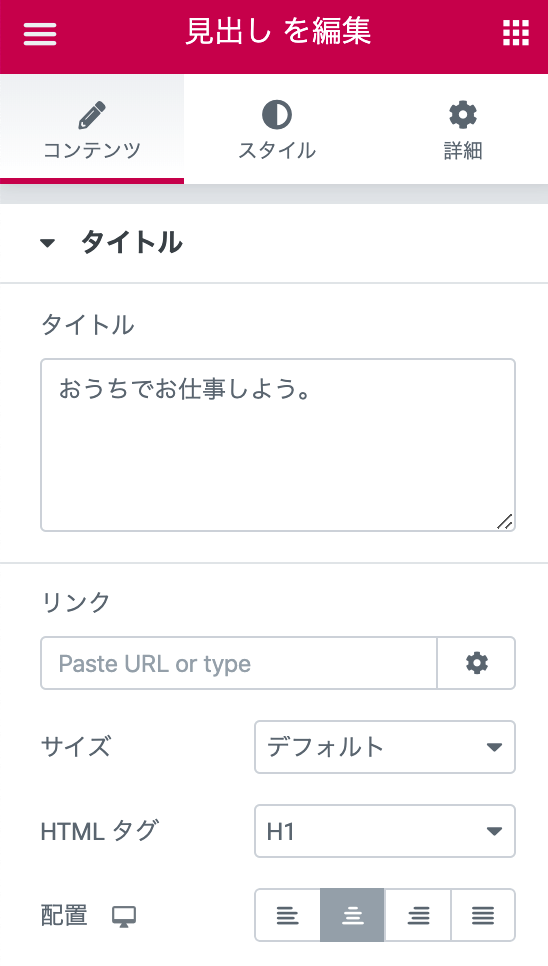 このように変わりました。エレメントにはこのような見出しだけでなく、様々なものに文字が入力されています。それぞれ変更する際にはエレメントの編集画面でいろいろとクリックして、画面で表示されている文字がどこにあるのか見つけて編集してください。