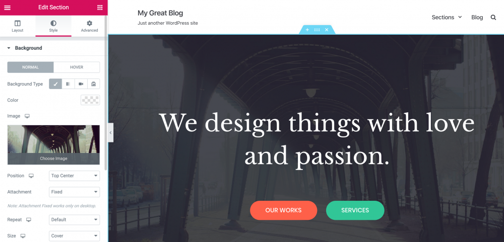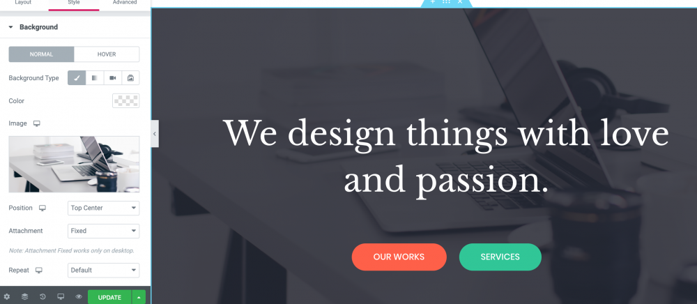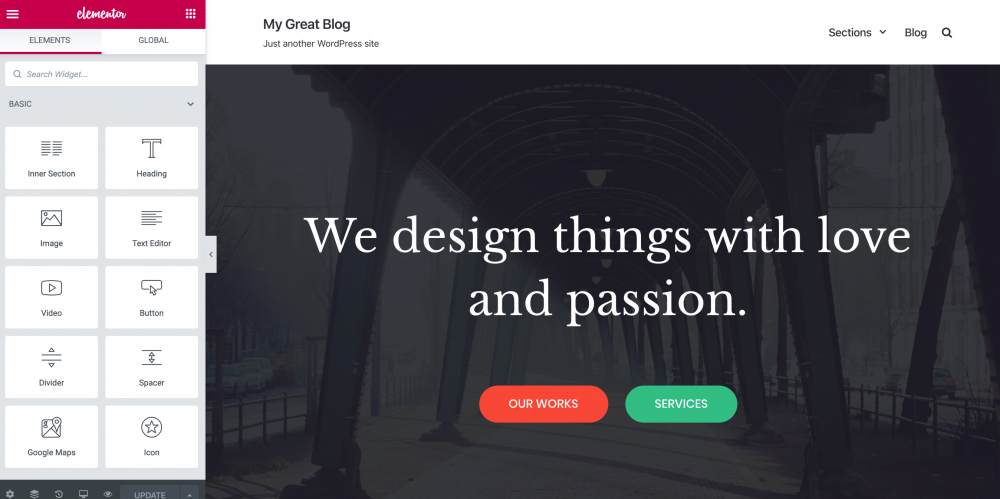 更新する際に、このElementorはセクションと呼ぶまとまったグループの中にエレメントという様々なパーツが配置されているもの、ということを覚えておいてください。