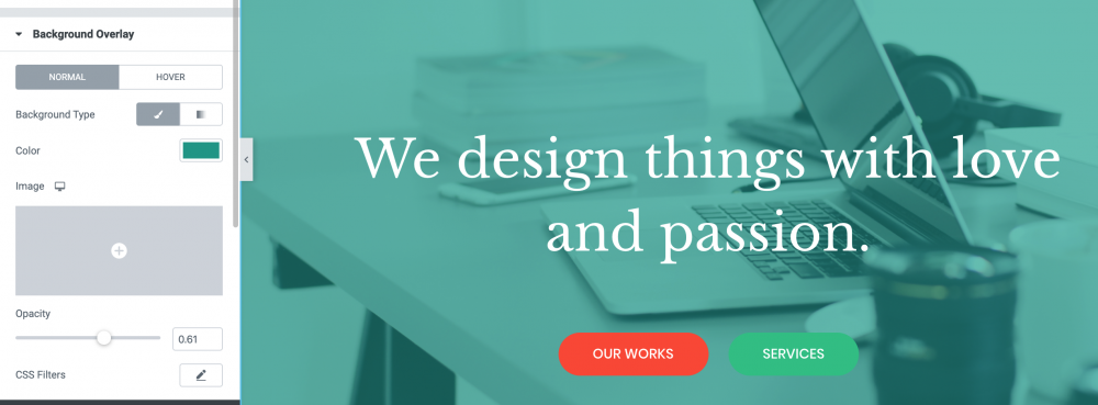 Color(色)、Opacity(透明度)をこのように変更してみると、緑色で若干画像が見えるような感じに変更されました。