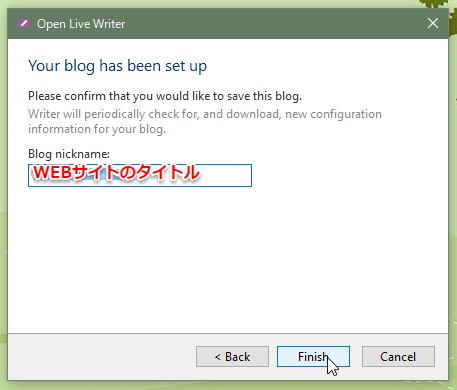 情報が正しければここでWEBサイトのタイトルが入っています。Finishをクリック