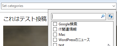 Set categoriesをクリックすると、WEBサイトで作ってあるカテゴリーが表示されますので