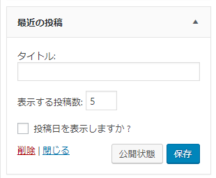 最近の投稿ウィジェットでの表示はデフォルトで
