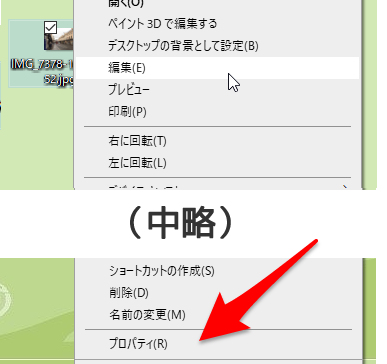 ダウンロードした写真を右クリックして プロパティをクリックしたときに