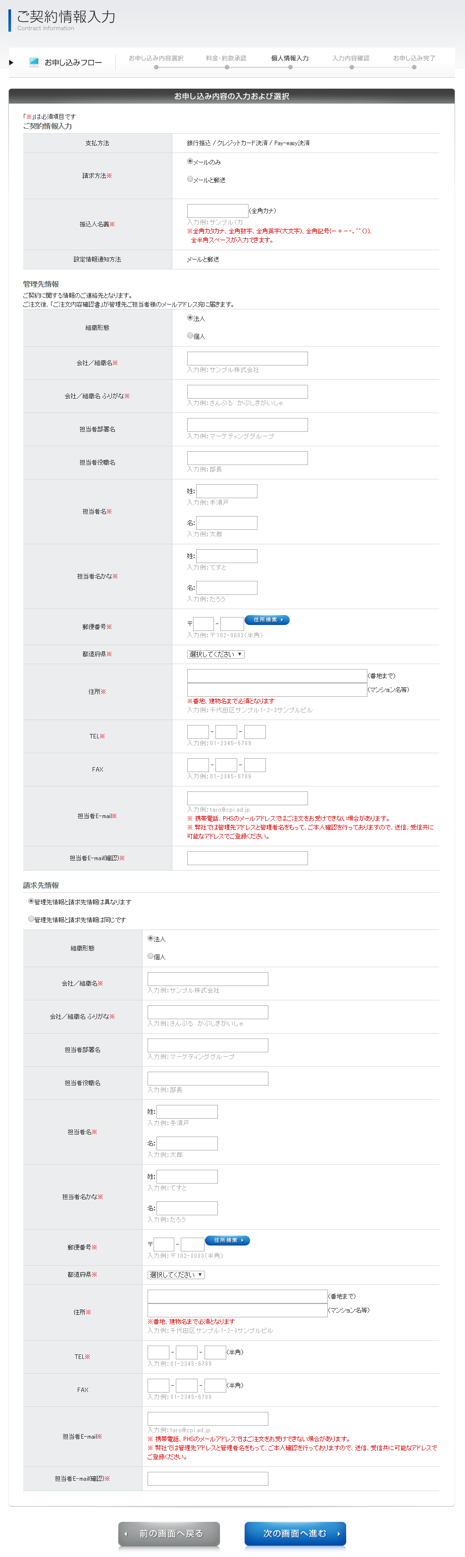 個人情報入力画面になります。契約先、管理先情報を入力して