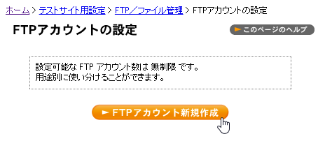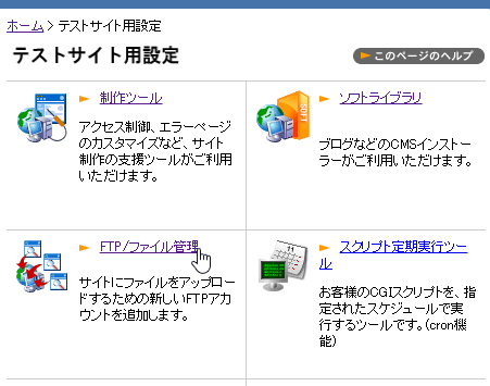 ホーム>テストサイト用設定>FTP/ファイル管理 をクリック
