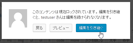 寄稿者がまだログアウトしてない場合など、この画面が出ることがあります。その場合は 編集を引き継ぐ をクリックします。