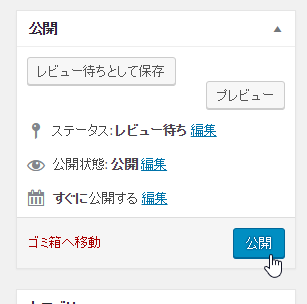 そして通常通り 公開 をクリックすると記事が公開されます。レビュー待ちとして保存 をクリックすれば、寄稿者がまた編集することも可能です。