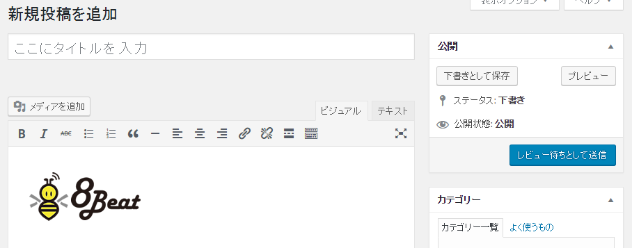 投稿をしてみたいと思います。 投稿>新規追加 をクリック
