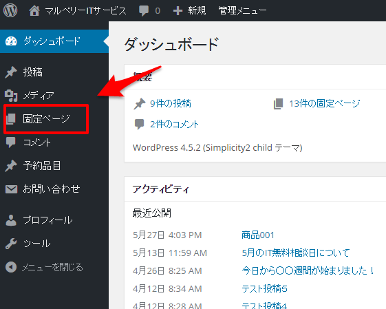 固定ページ(会社案内などの静的ページ)を書いてみる、というタイトルは付けたのですが、寄稿者がダッシュボードに入ったときに