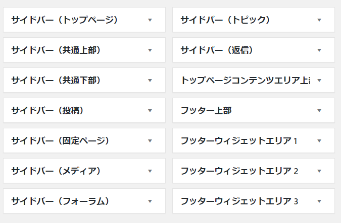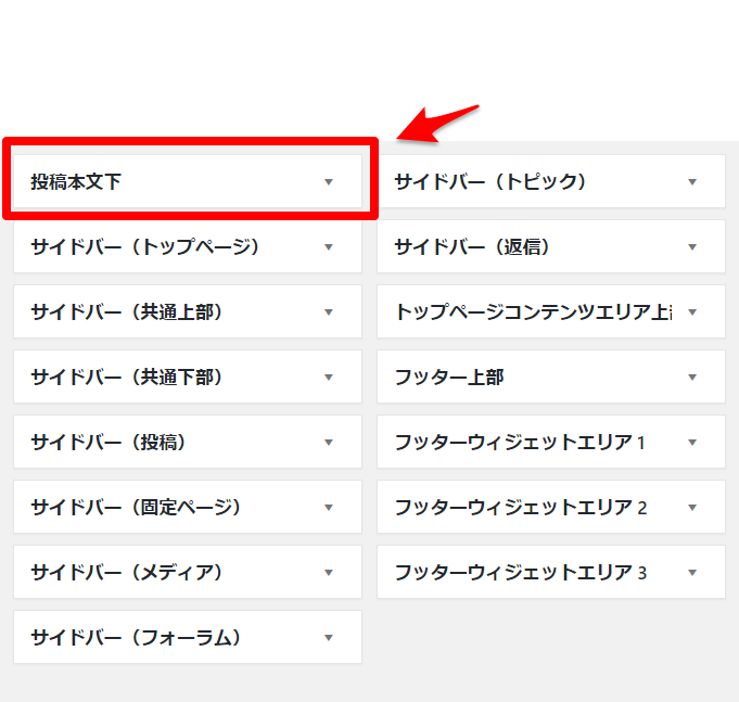 ダッシュボード 外観>ウィジェット を見るとこのように投稿本文下ウィジェットエリアが追加されていることがわかります。