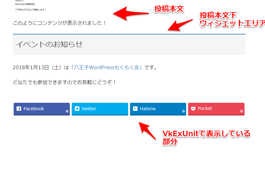 追加した投稿本文下ウィジェットエリアを使ってみます。