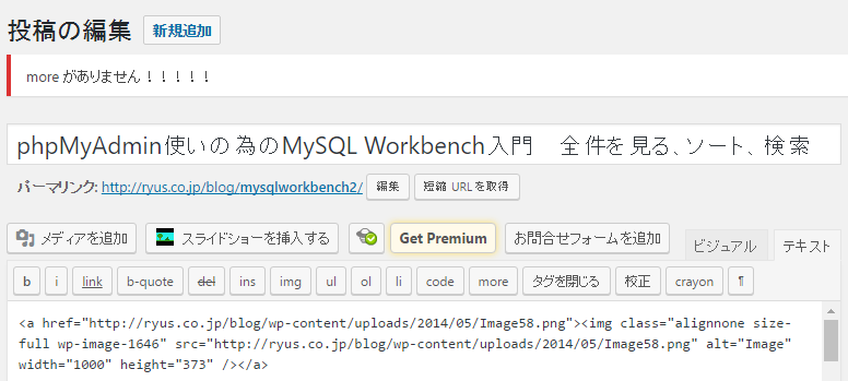 phpMyAdminで「続きを読む」が入っていない投稿を抽出する