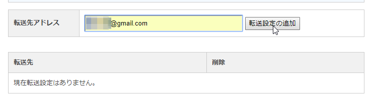 転送先のgmailアドレスを入力して、転送設定の追加をクリック
