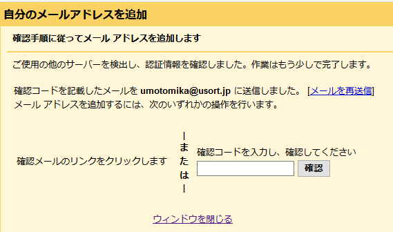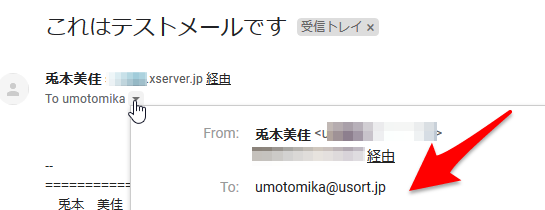 試しに異なるメールアドレスから今作ったメールアドレスにメールを送ってみます。