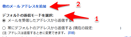 まずは1がこの画面のようにメールを受信したアドレスから返信するになるようにして下さい。