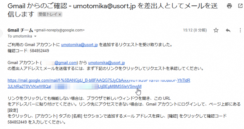 転送設定をした、gmailあてに、メールはちゃんと届きました!
